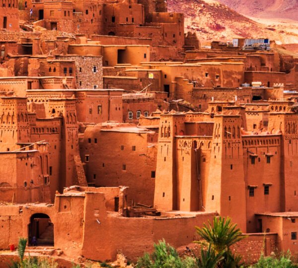 Cross the High Atlas Mountains via Tizi n’Tichka Pass. Visit the UNESCO site Ait Ben Haddou, then continue through Ouarzazate and the Skoura palm oasis to reach Dades Valley. Overnight in a mid-range hotel or guesthouse with mountain views.